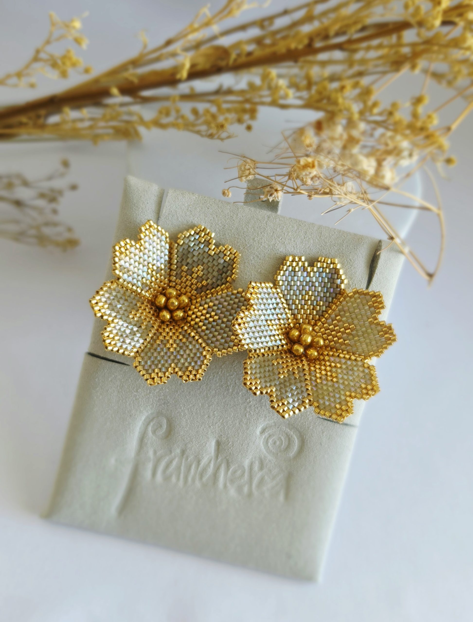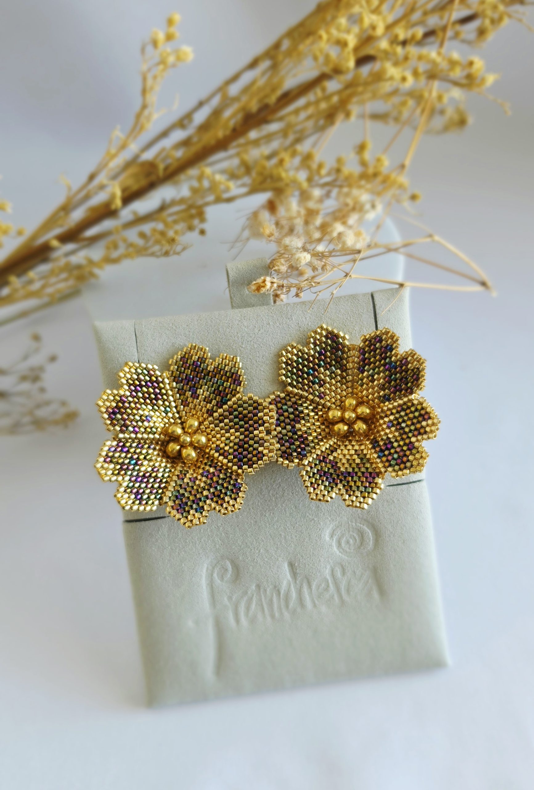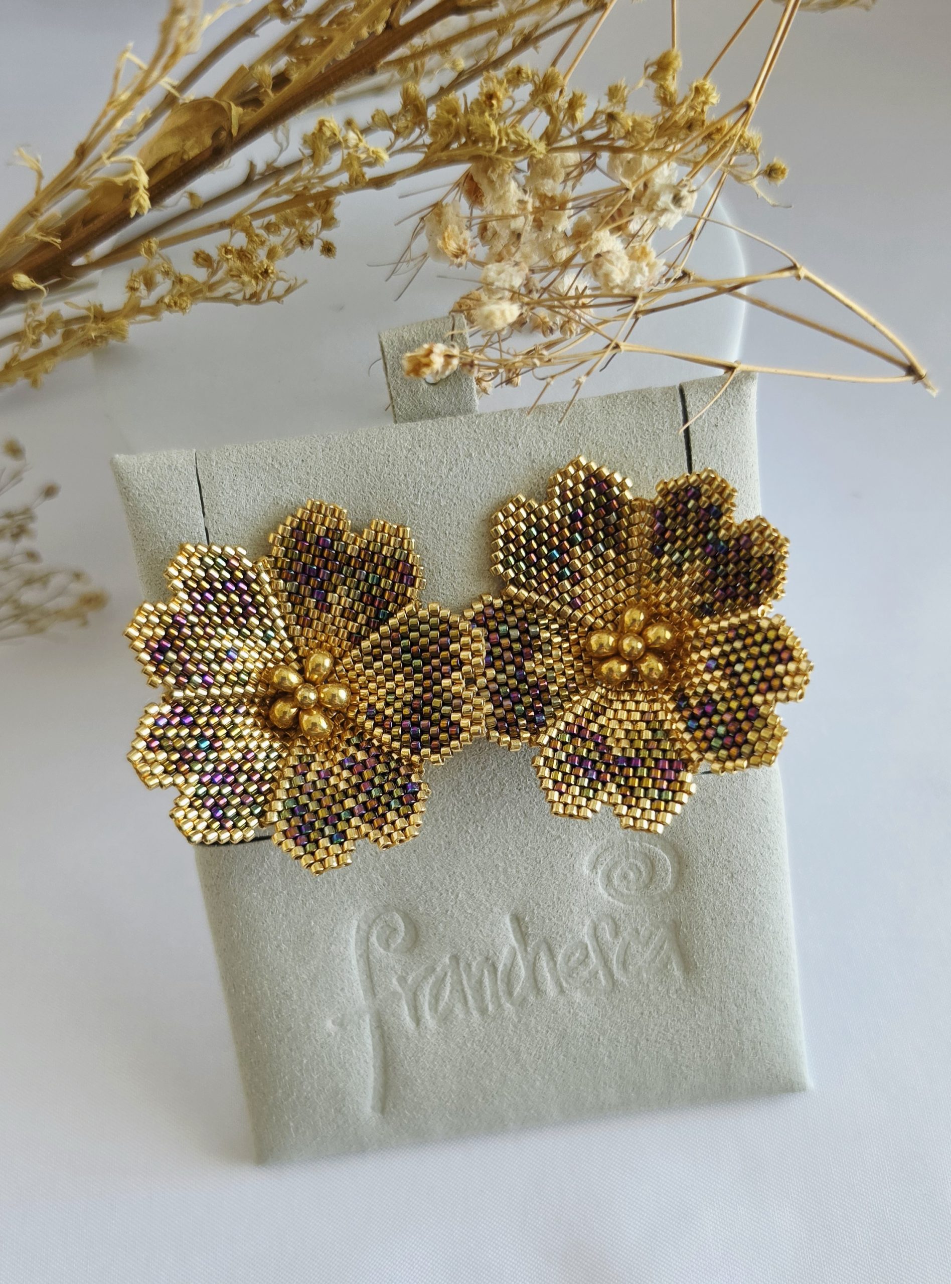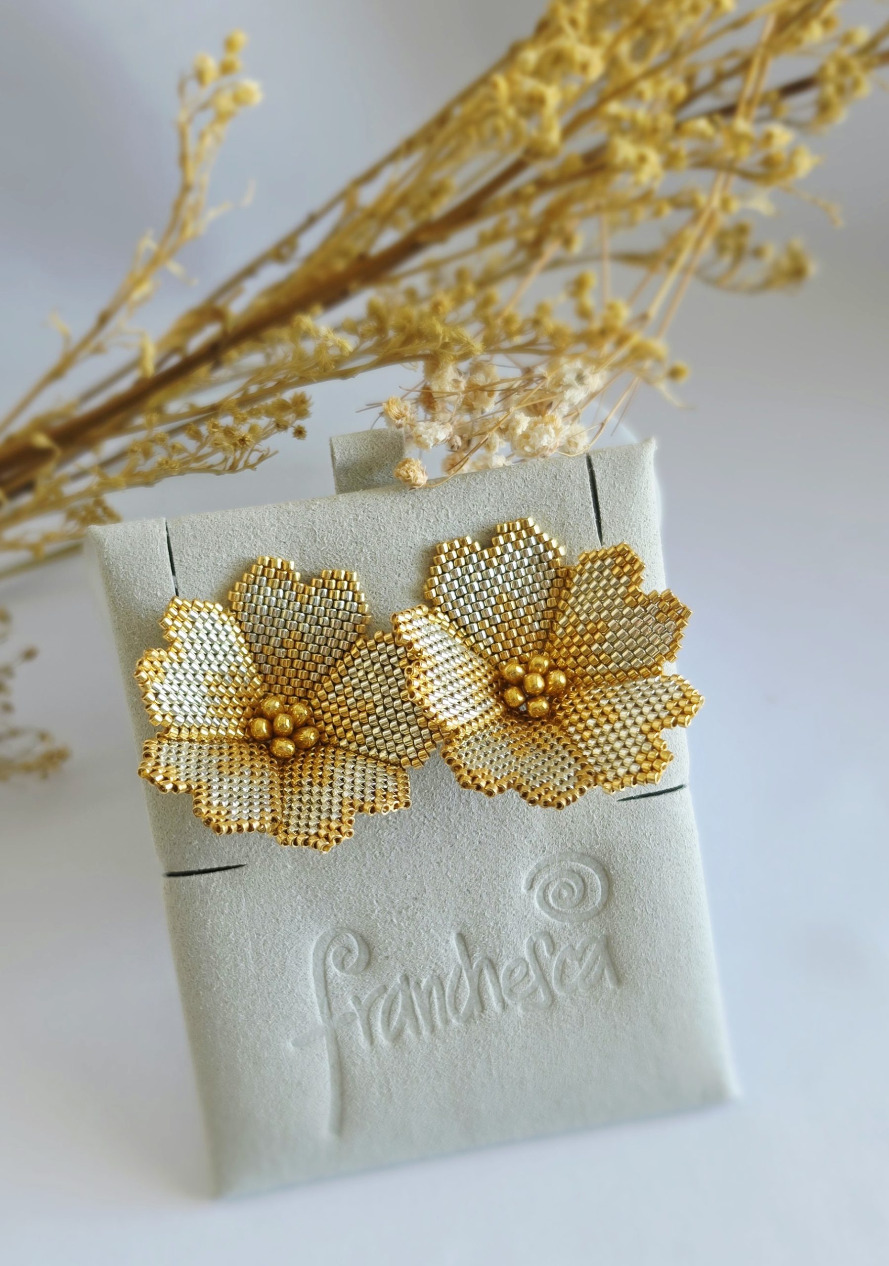 Beautiful big earrings, with luxury flower design ,made in MIYUKI CRISTALS and 18k Goldplated earrings stoppers.