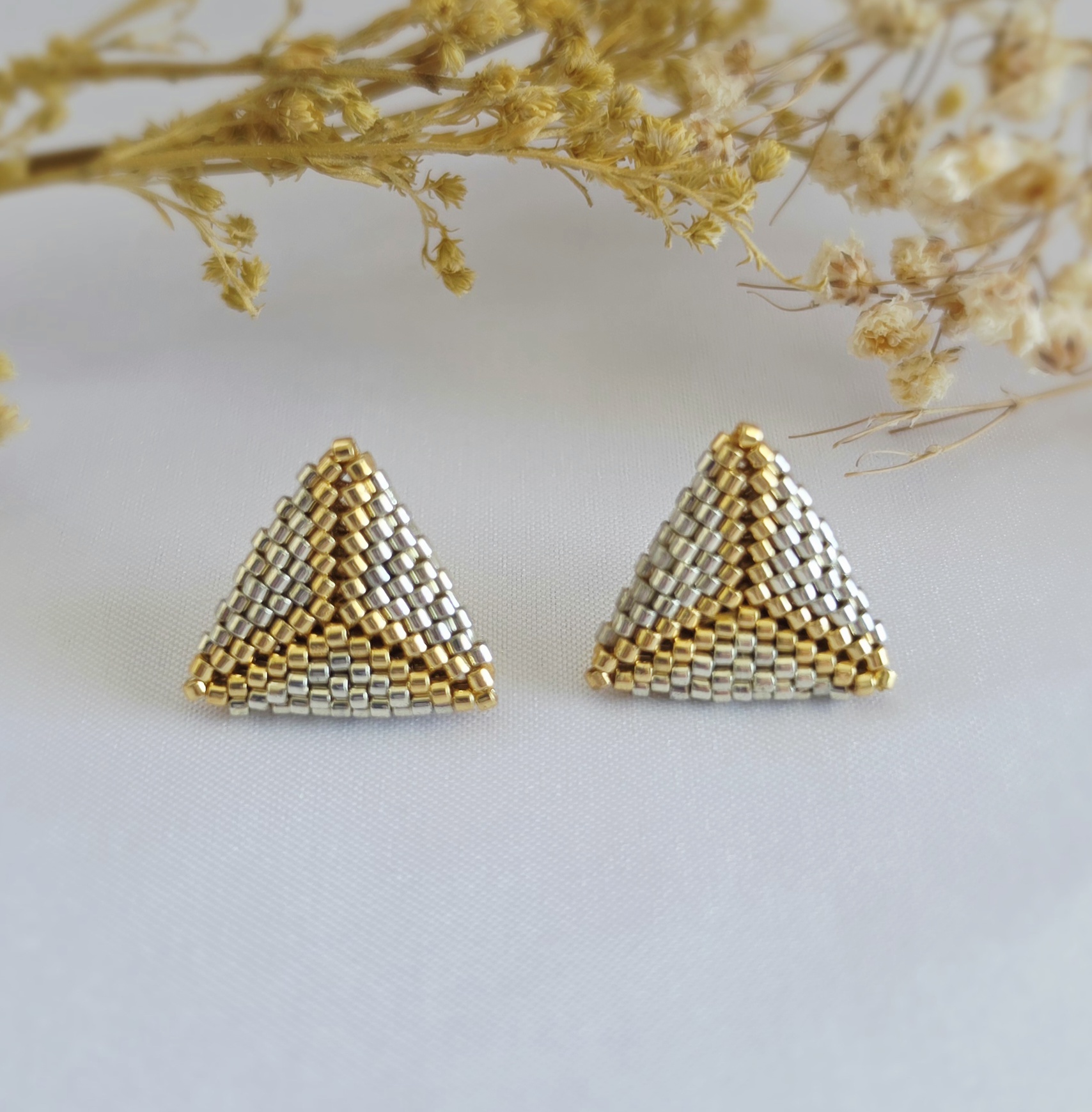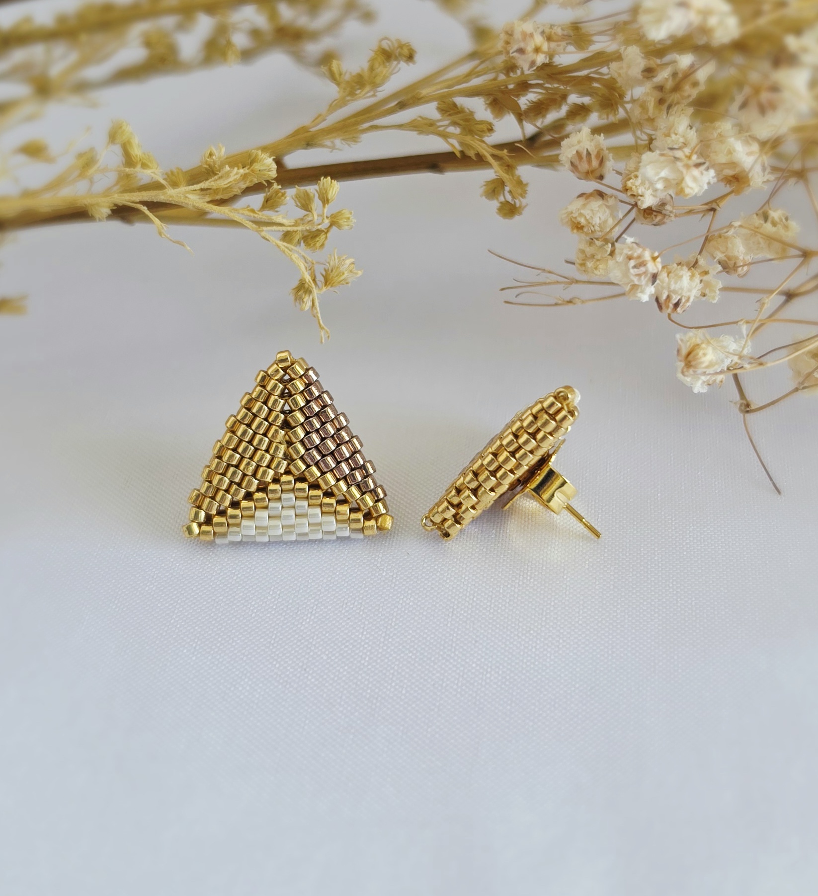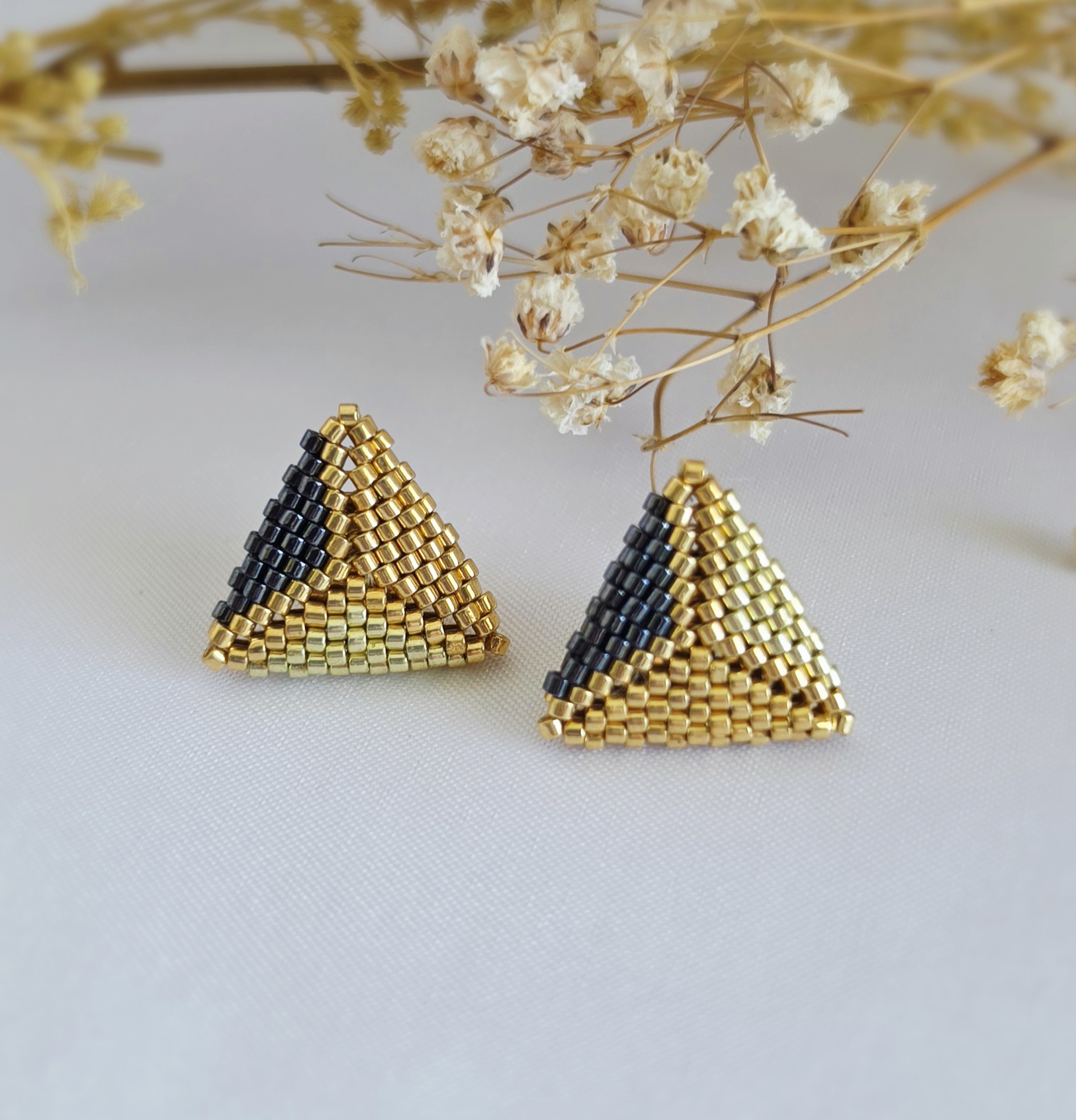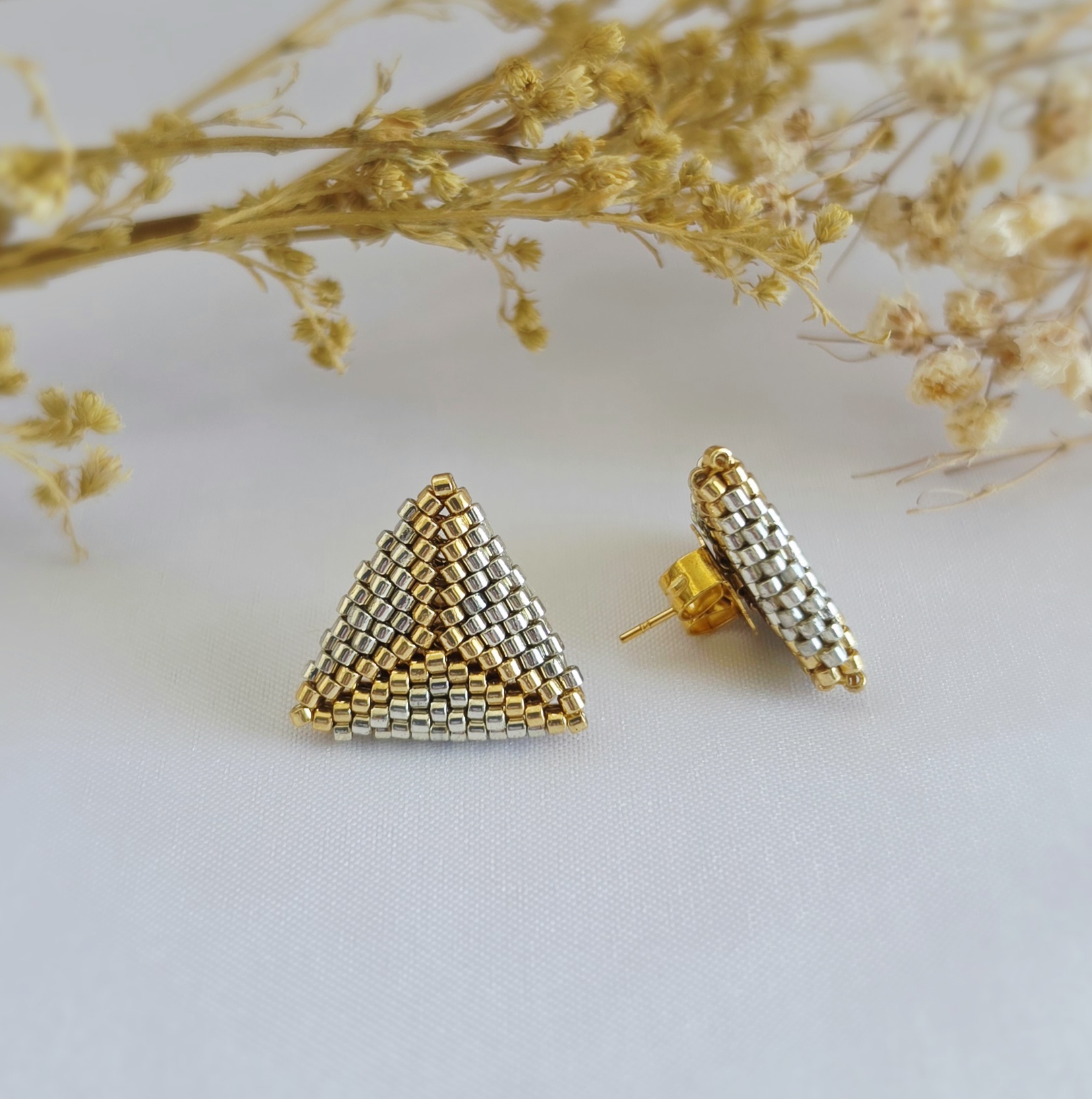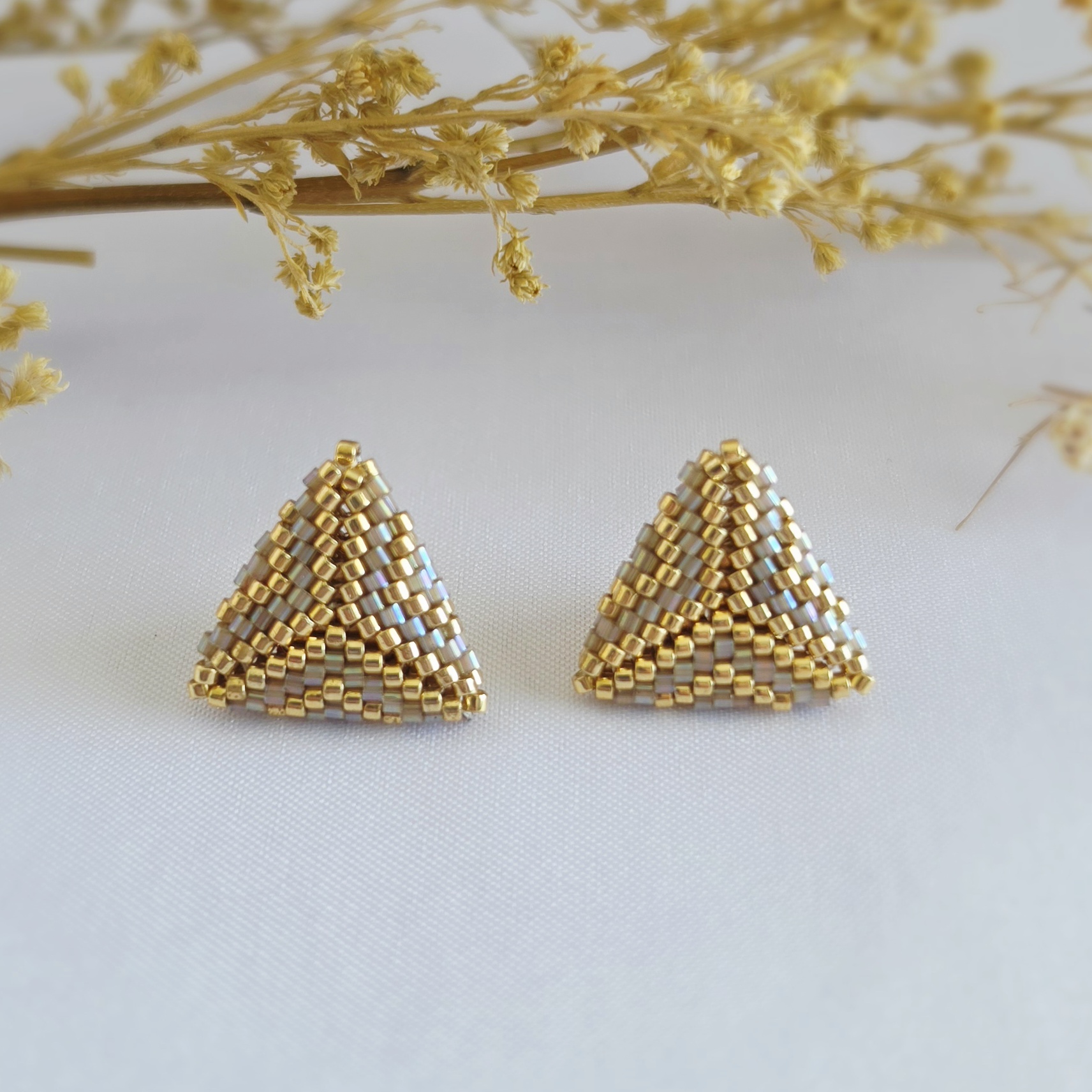 Beautiful small studs earrings, with geometric design ,made in MIYUKI CRISTALS and 18k Goldplated earrings stoppers.